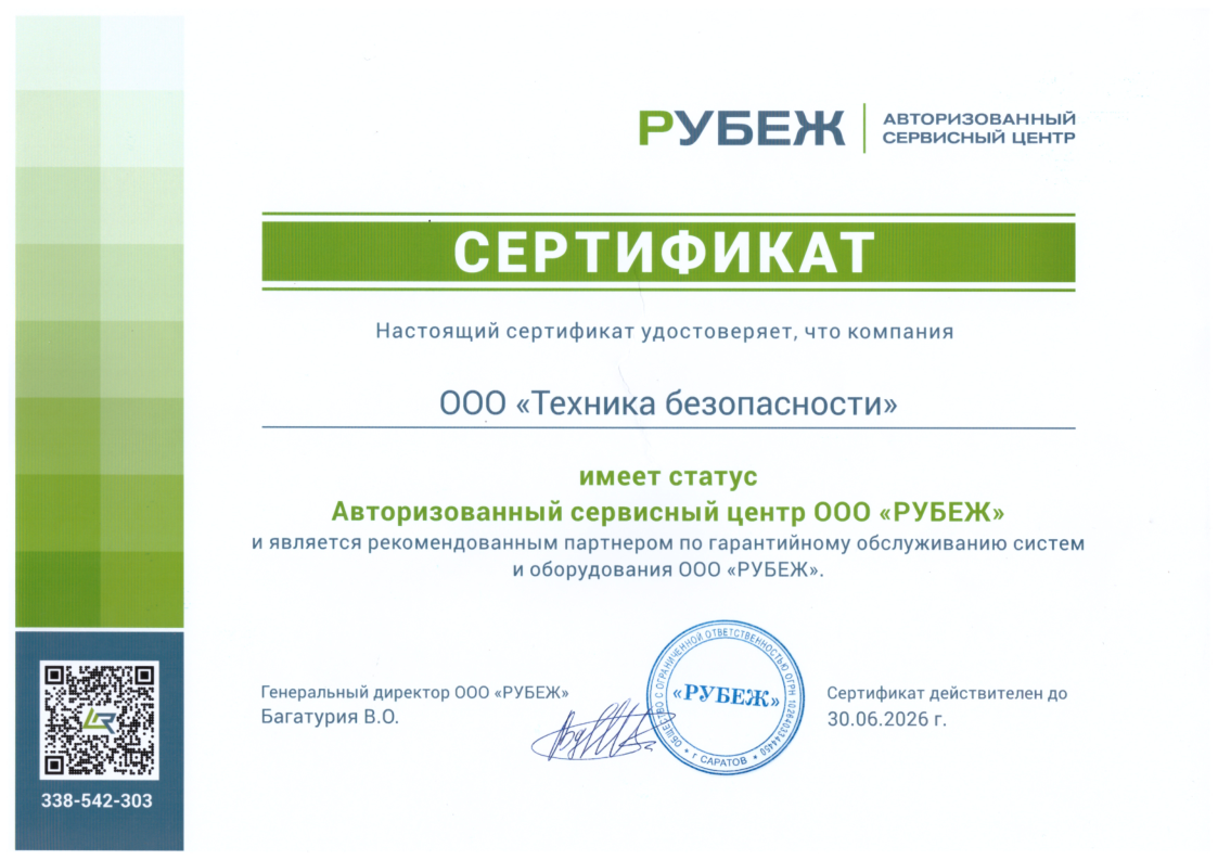ООО «Техника безопасности» официально включён в реестр авторизованных сервисных центров (АСЦ) компании Рубеж — крупнейшего российского производителя систем безопасности. Статус подтверждён на официальном сайте производителя. Мы включены в список партнёров на официальном сайте производителя систем безопасности.